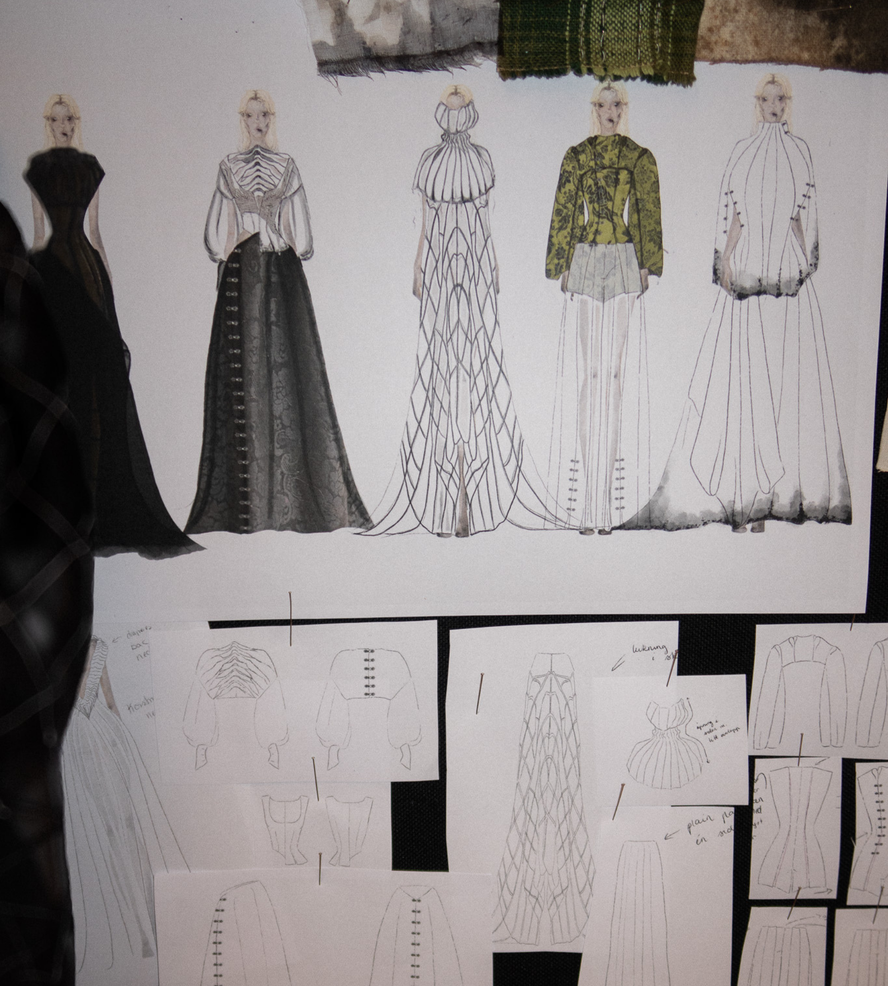 Her grandmother, a teacher, did something few women dared to at the time: with three children, she enrolled in a creative school in Gothenburg to study design, pattern making, sewing, and textile craftsmanship. She has binder after binder filled with work and knowledge built over a lifetime, intensely detail-oriented and perfectionistic in a way Felicia both admires and recognizes in herself.